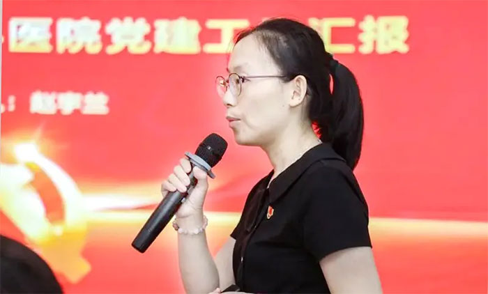 ▲ 蓝十字党支部副书记赵宇兰作医院党建经验专题分享