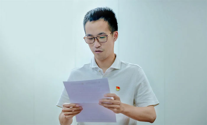 ▲ 曹雨枫同志宣读转正申请