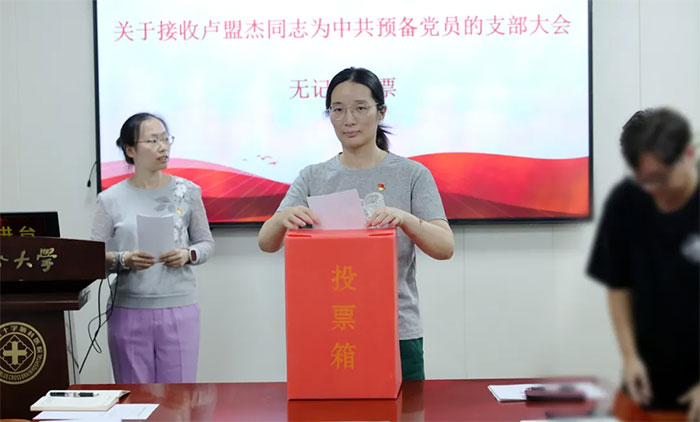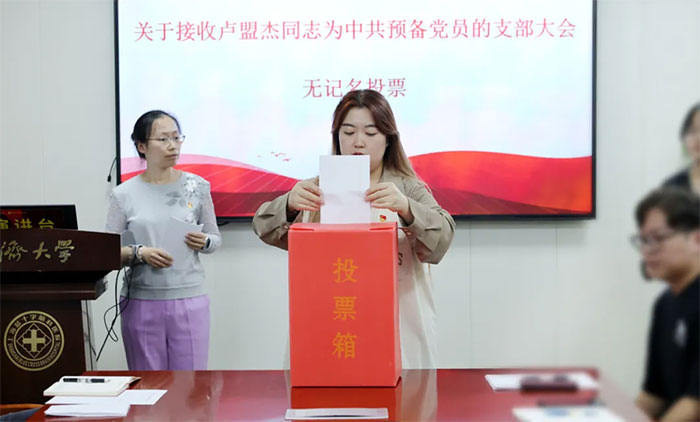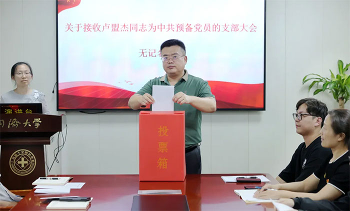 与会党员本着认真负责的态度,对卢盟杰同志的表现进行了充分讨论并给予了充分肯定。大家一致认为,卢盟杰同志入党动机端正,注重党的理论学习,思想觉悟和业务能力持续提升,已基本具备党员条件。经大会无记名投票表决,全票通过接收卢盟杰同志为中共预备党员。赵宇兰副书记宣读了决议。