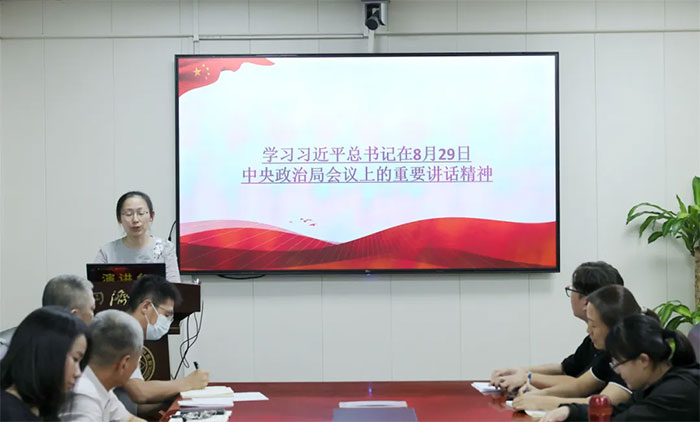 会议进入第二项议程,赵宇兰副书记带领全体党员深入学习了习近平总书记在8月29日中央政治局会议上的重要讲话精神。