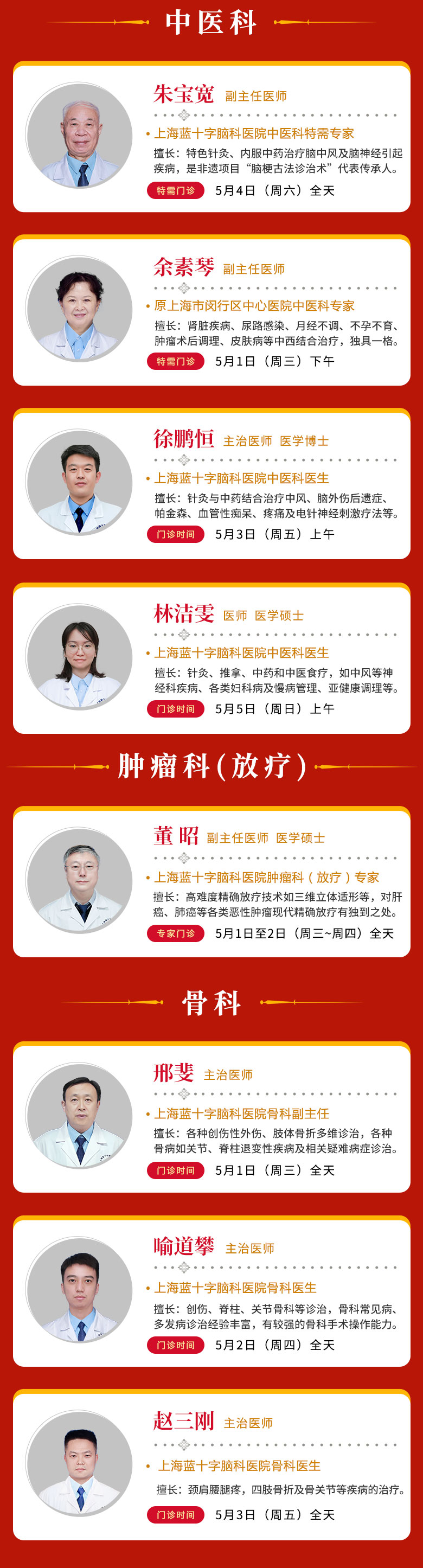 为更好满足广大市民朋友的就医需求,根据国务院有关法定假日安排的规定,结合上海蓝十字脑科医院实际情况,2024年“五一”劳动节假期(5月1日—5日)期间医院门、急诊照常开诊。具体排班公告如下:
