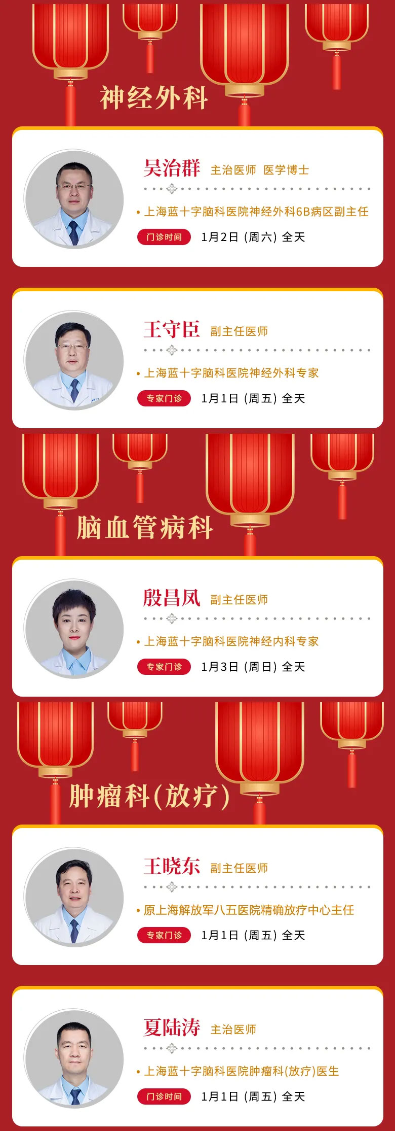 因假期就诊人数较多,建议您关注上海蓝十字脑科医院微信公众号或拨打预约电话(021-64879999)提前预约,以减少您的排队等候时间。预祝大家节日快乐,万事如意,阖家安康!