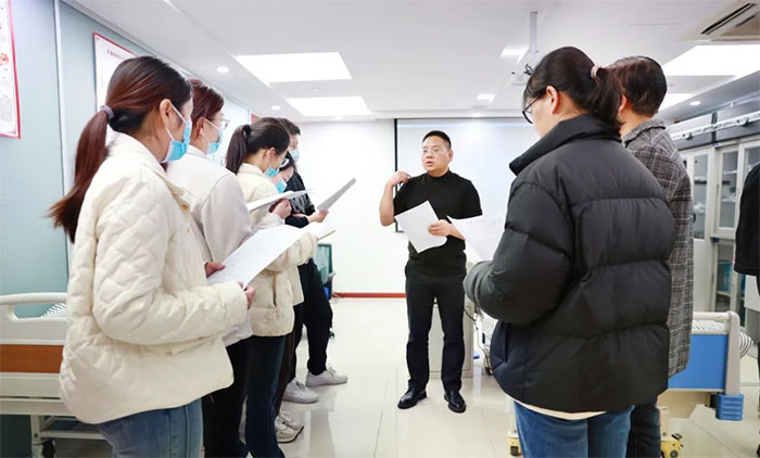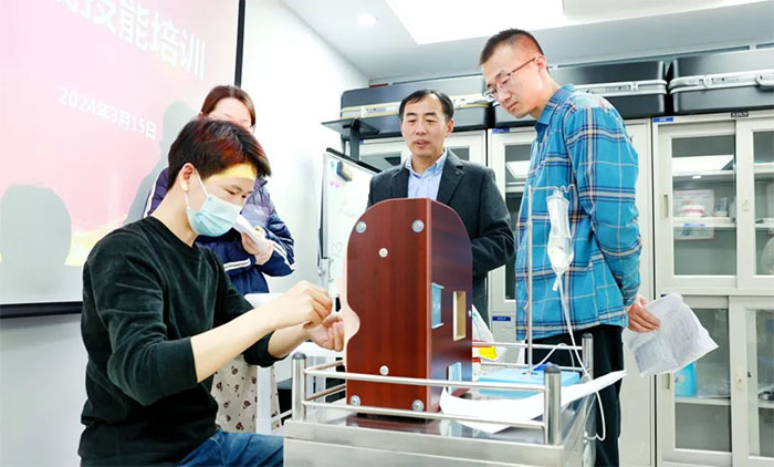 身为医者,有自己的大局观,处处为患者考量;身为讲师,有严谨的教学态度,对教学成果负责。两位副主任在授课过程中,以理论讲解为主、实际演练为辅,逐一讲解各项技能的要点、重点、难点,并让青年医师们一一进行实操演练,让大家对临床操作技巧有更透的理解和更深入的掌握。随后,再一一进行高标准的技能考核。干货满满的培训,青年医师们纷纷表示受益匪浅。