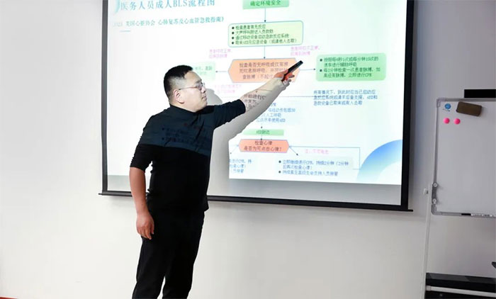 麻醉科副主任樊虎利用多年来积累的临床实战经验,围绕心肺复苏术的操作方法、操作要点及判断标准等方面内容条分缕析,向大家重点讲解了实施急救时的要点及注意事项。