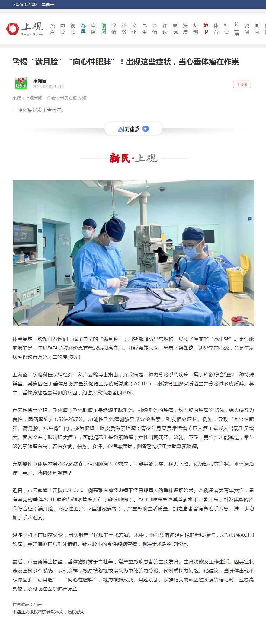 原文来源:上观新闻 |在北京时间2026年2月9日 8:00:00 网站截图。