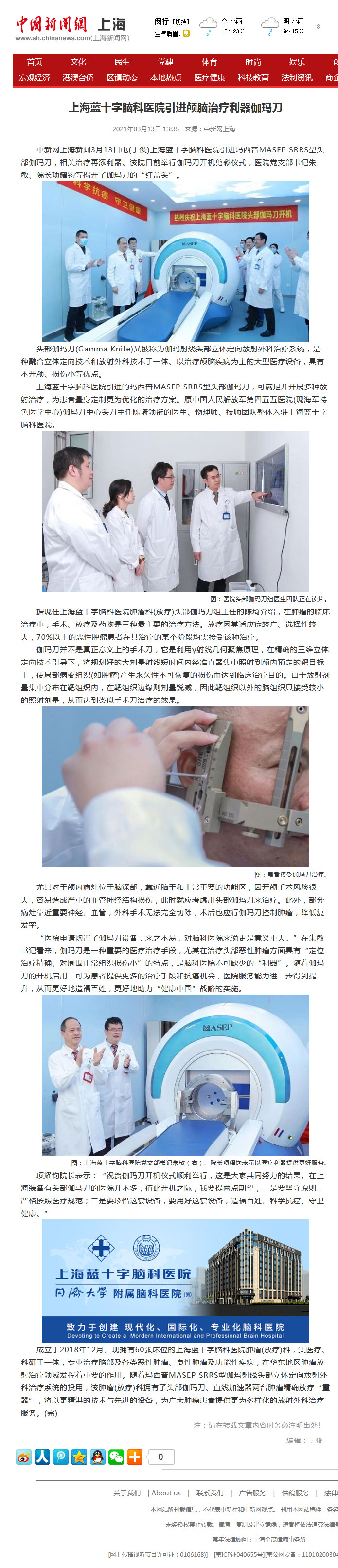 成立于2018年12月、现拥有60张床位的上海蓝十字脑科医院肿瘤(放疗)科,集医疗、科研于一体,专业治疗脑部及各类恶性肿瘤、良性肿瘤及功能性疾病,在华东地区肿瘤放射治疗领域发挥着重要的作用。随着玛西普MASEP SRRS型伽玛射线头部立体定向放射外科治疗系统的投用,该肿瘤(放疗)科拥有了头部伽玛刀、直线加速器两台肿瘤精准放疗“重器”,将以更精湛的技术与先进的设备,为广大肿瘤患者提供更为多样化的放射外科治疗服务。(完)