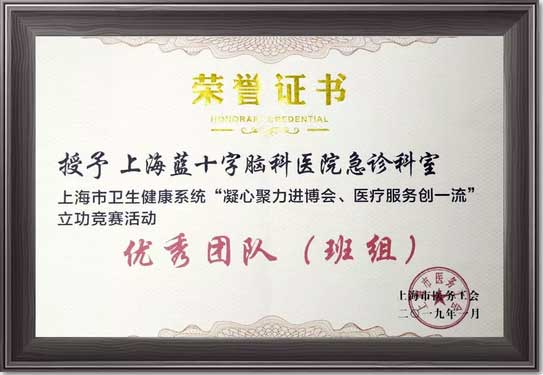 中新网上海新闻3月16日电(李玉)上海蓝十字脑科医院全员职工积极投身“凝心聚力进博会、医疗服务创一流”立功竞赛活动。日前,医院急诊科以其优秀表现荣获本次立功竞赛活动“优秀团队”称号,展示了该医院作为国际JCI认证的脑科医院之风采,更向世界展示了魅力上海、多彩七宝的良好形象。