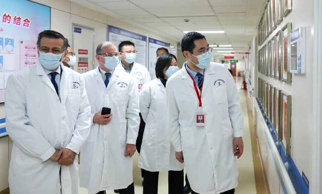 美方专家实地参观了手术室、重症医学科、神经内科、康复科、放疗科、高压氧科等科室,详细了解医院在脑病诊疗领域的学科布局、设备配置、诊疗流程和质控体系。他们对医院在多学科协作和精细化管理方面的做法表示肯定,并详细了解了“锦旗墙”背后的故事。