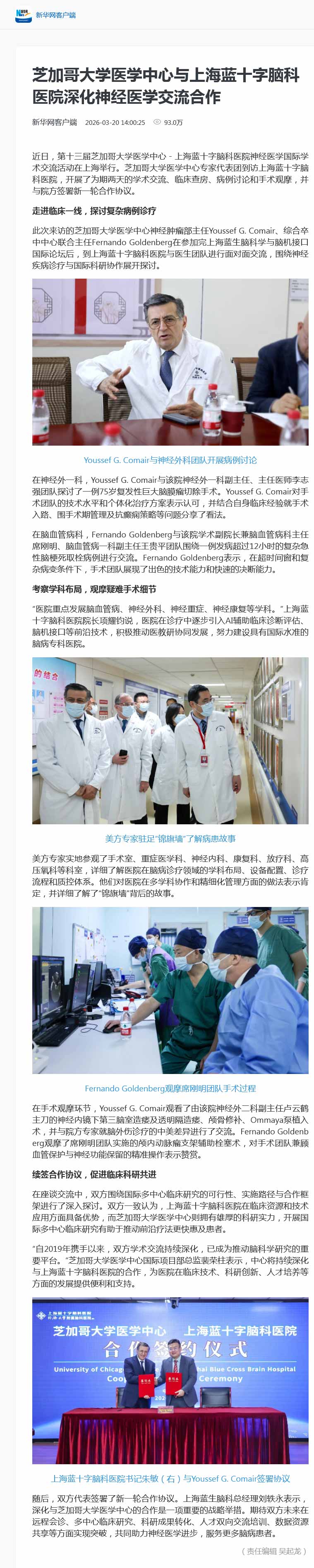 “自2019年携手以来,双方学术交流持续深化,已成为推动脑科学研究的重要平台。”芝加哥大学医学中心国际项目部总监裴荣柱表示,中心将持续深化与上海蓝十字脑科医院的合作,为医院在临床技术、科研创新、人才培养等方面的发展提供便利和支持。
