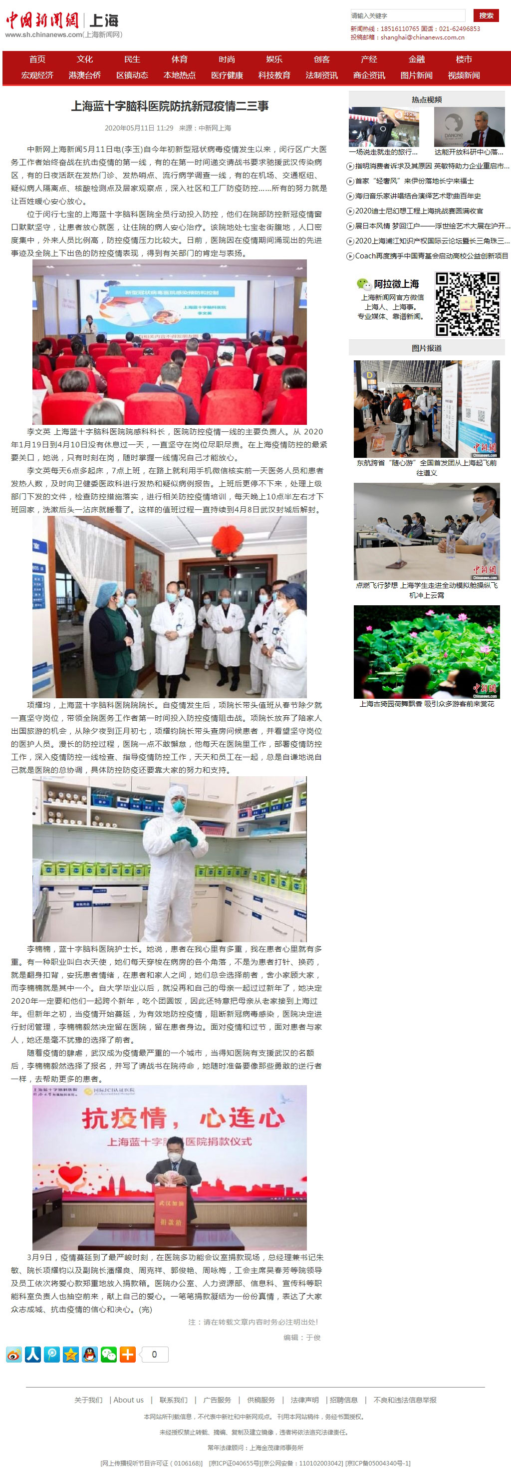 位于闵行七宝的上海蓝十字脑科医院全员行动投入防控,他们在院部防控新冠疫情窗口默默坚守,让患者放心就医,让住院的病人安心治疗。该院地处七宝老街腹地,人口密度集中,外来人员比例高,防控疫情压力比较大。日前,医院因在疫情期间涌现出的先进事迹及全院上下出色的防控疫情表现,得到有关部门的肯定与表扬。