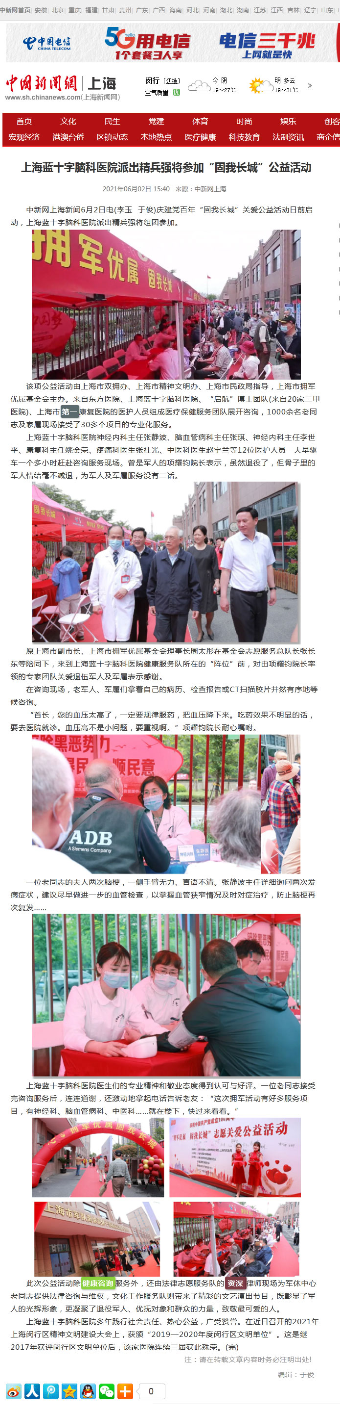中新网上海新闻6月2日电(李玉 于俊)庆建党百年“固我长城”关爱公益活动日前启动,上海蓝十字脑科医院派出精兵强将组团参加。