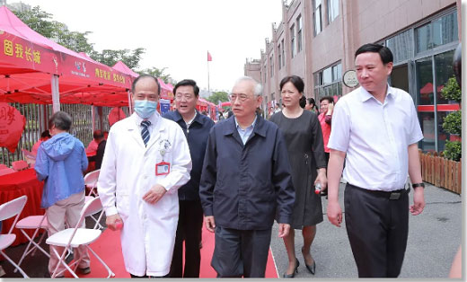 活动期间,原上海市副市长、上海市拥军优属基金会理事长周太彤在上海市拥军优属基金会志愿服务总队长张长东等的陪同下,来到上海蓝十字脑科医院健康服务队所在的“阵位”前,对蓝十字如此关注退役军人及军属、以实际行动关爱退伍军人及军属表示感谢。