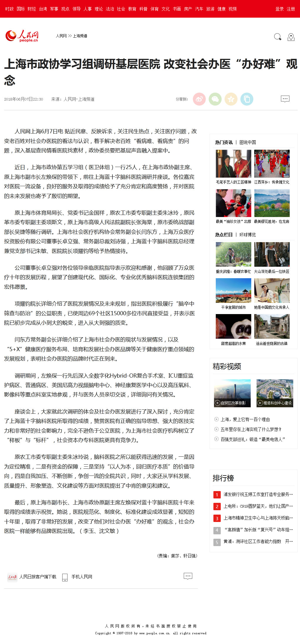 人民网上海6月7日电 贴近民意、反映诉求,关注民生热点,关注医疗问题,改变老百姓对社会办医院的看法与认识,着手解决老百姓“看病难、看病贵”的问题,深入基层查民情看医院找素材,政协委员要把基层声音融入提案中。