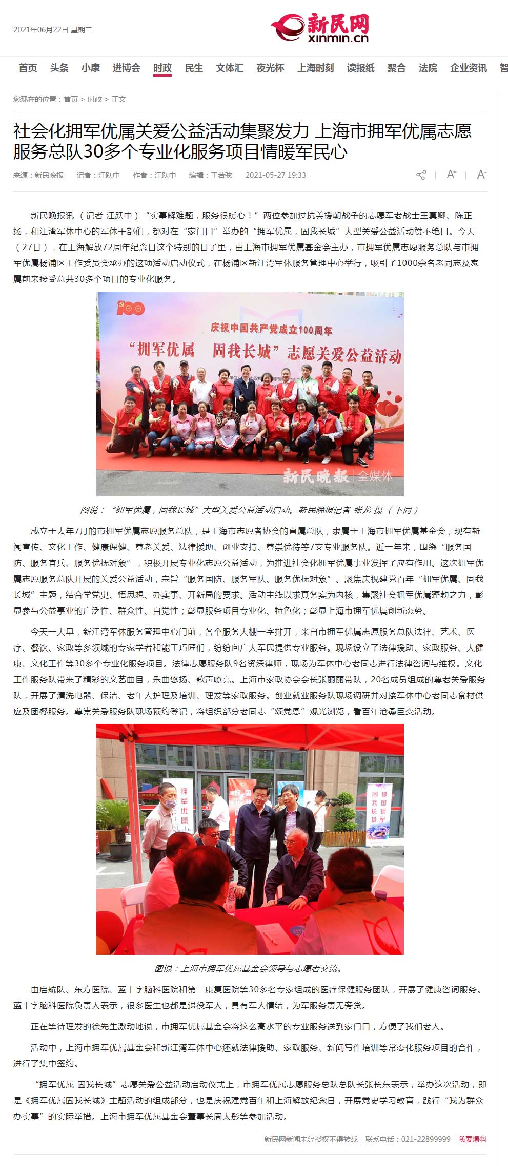 “拥军优属 固我长城”志愿关爱公益活动启动仪式上,市拥军优属志愿服务总队总队长张长东表示,举办这次活动,即是《拥军优属固我长城》主题活动的组成部分,也是庆祝建党百年和上海解放纪念日,开展党史学习教育,践行“我为群众办实事”的实际举措。上海市拥军优属基金会董事长周太彤等参加活动。