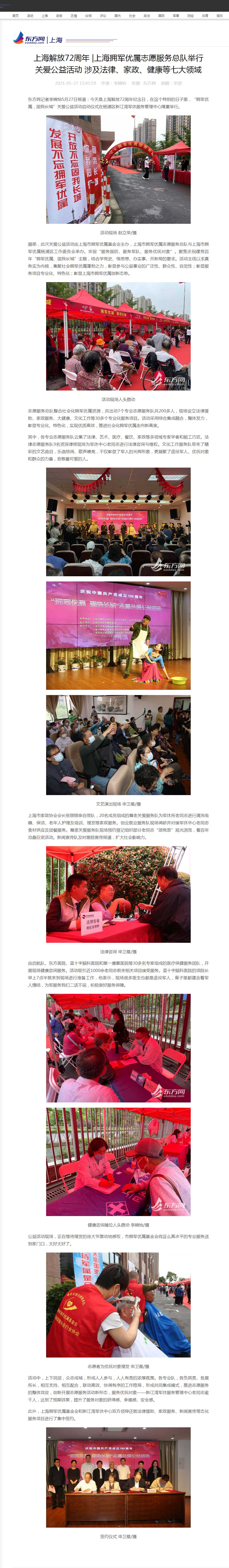 东方网记者李婉怡5月27日报道:今天是上海解放72周年纪念日,在这个特别的日子里,“拥军优属,固我长城”关爱公益活动启动仪式在杨浦区新江湾军休服务管理中心隆重举行。