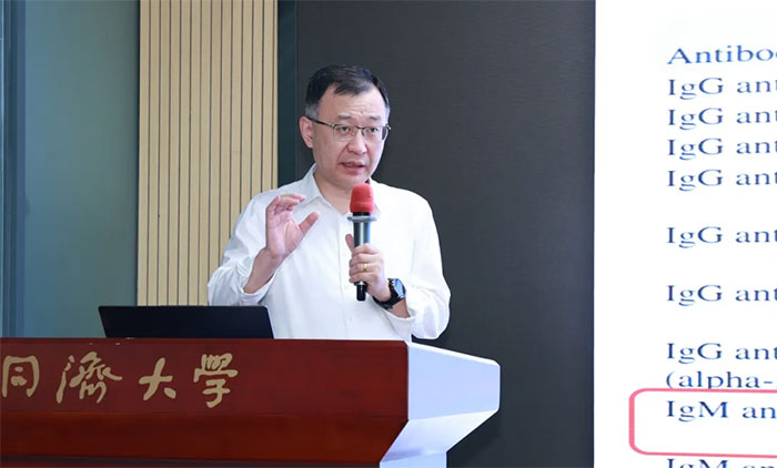 陈向军教授作《“责任抗体”与自身免疫性周围神经病》报告。他主要介绍了免疫性周围神经病的表型特征,免疫性周围神经病中的抗原和抗体,“责任抗体”在GBS/CIDP中的实践。由陈向军教授首次提出的“责任抗体”是一个革命性的概念,开启了神经系统免疫病临床研究的新纪元。“责任抗体”是致病性抗体,然而并非所有的致病性抗体都属于“责任抗体”。陈向军教授强调了“责任抗体”的因果关系,包括空间和时间上的因果关系两个维度。陈向军教授的演讲高屋建瓴,让现场医学同仁获益匪浅。
