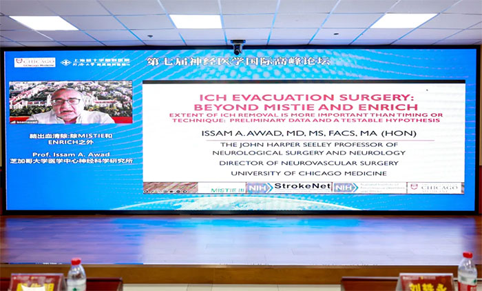 UCM Issam A.Awad教授带来题为“Intracerebral Hemorrhage Evacuation: beyond MISTIE and ENRICH”的学术报告。他首先对脑出血进行概述,然后结合MISTIE、STICH、ENRICH等国际经典研究及多中心随机试验的新进展及自己20多年的研究所得,探讨分析脑出血清除的不同治疗方法、治疗时间窗等的生存获益、功能获益及临床获益,为大家带来国际前沿的信息和知识。