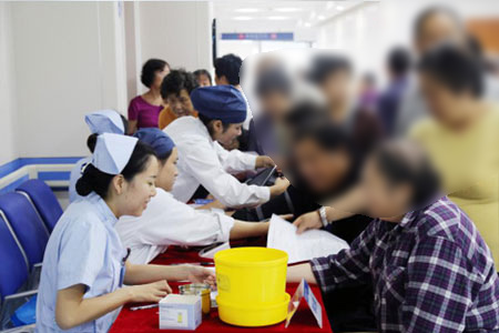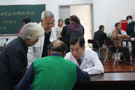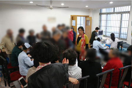 老人们开心地接受检查