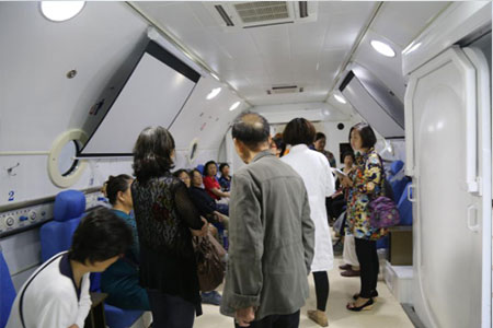 高压氧对预防脑卒中有不可替代的作用,市民们进入舱内体验