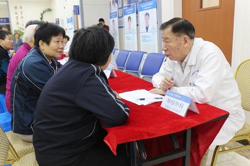 在蓝十字脑科医院的一楼,汪恒华、杨维干等诸多脑科专家已经十分忙碌地在为老人们开展健康医疗免费会诊。他们除了宣传、普及脑卒中知识外,并针对他们的自身情况,有针对性的给予专业意见,答疑解惑。