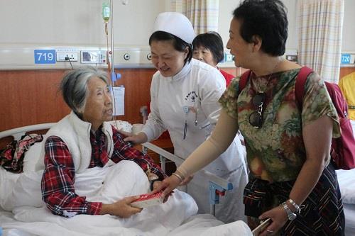 当天,院方一共为60岁以上的老病人送去了370多份重阳糕。来自荷兰的辛女士,看到了这一幕十分感动,“我要特别谢谢你们医院对我妈妈的照顾,我从国外来,第一次在国内看到这么好的医院,这么好的服务。”