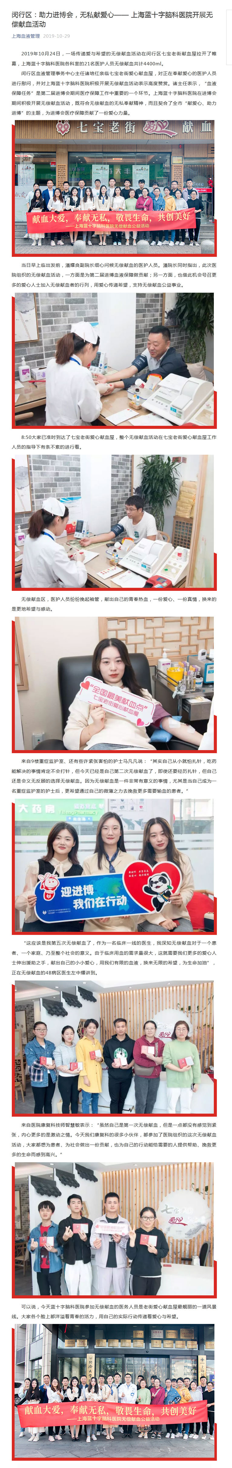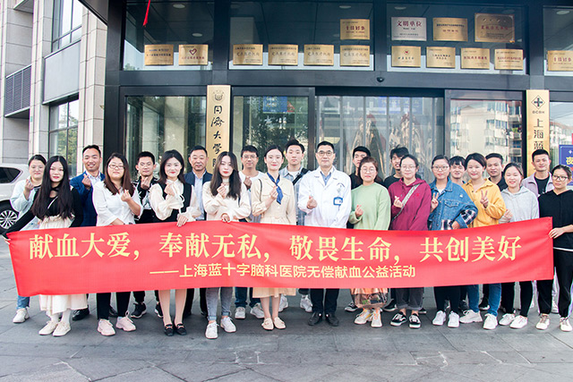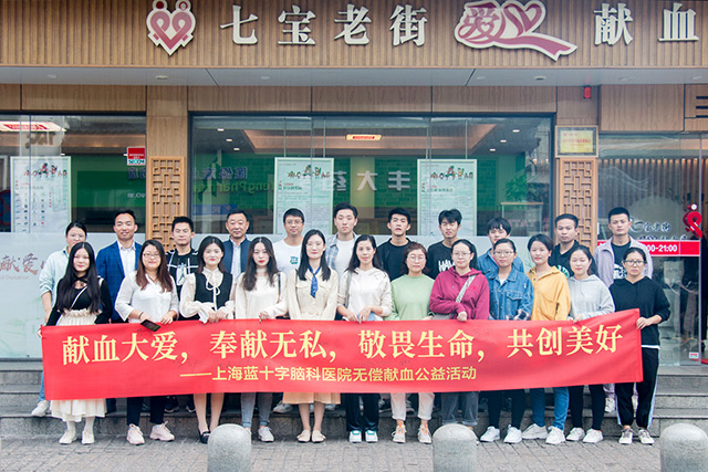 2019年10月24日,一场传递爱与希望的无偿献血活动在闵行区七宝老街献血屋拉开了帷幕,上海蓝十字脑科医院各科室的21名医护人员无偿献血共计4400ml。