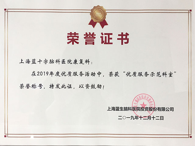 ▲ 康复科荣获公司2019年优质服务年活动“优质服务示范科室”荣誉称号