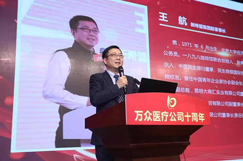 新希望集团王航副董事长说:万众医疗加盟新希望集团,是双方共同正确的选择。感谢同济大学在品牌和学科上的支持,也感谢社会医疗机构协会和所有的股东们。希望万众公司也能够注重实业、注重规范、注重科技、注重创新,要“重仓年轻人”。规规矩矩办医院,开动脑筋办医院,共同打造一个更加辉煌的十年,成就一个了不起的品牌。
