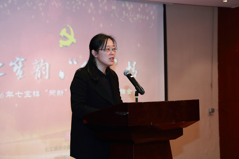 七宝镇党委委员、副镇长、社建委书记金莉同志作年度党建工作总结报告