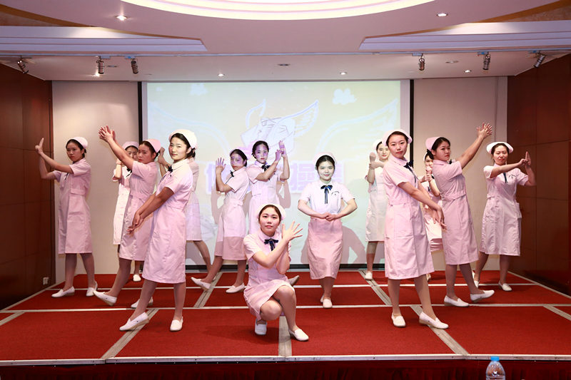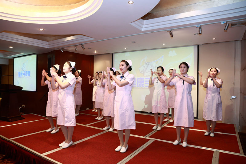 迎春联欢活动,我院14名护士上台表演了“健康手操舞”,并代表蓝十字脑科医院向与会的各位领导、党支部书记代表及嘉宾送上了新年的祝福。我院党支部委员、院办金彩凤老师说:“表演什么节目是经过慎重考虑的,洗手虽然看起来是生活中微不足道的小事,但却是健康卫生事业中不可忽视的事。通过护士们的表演,就是希望将‘健康无小事’的理念传递给大家 。”