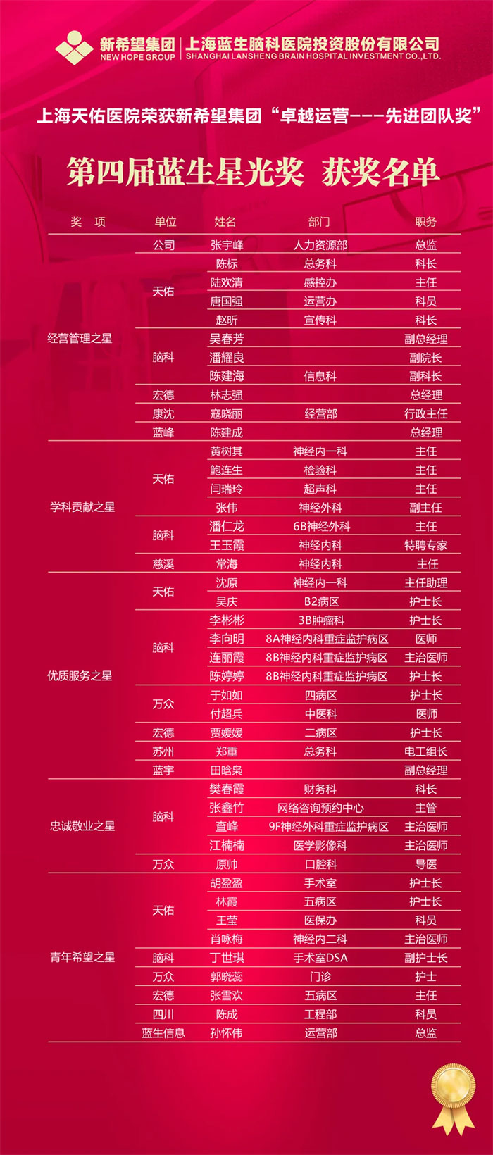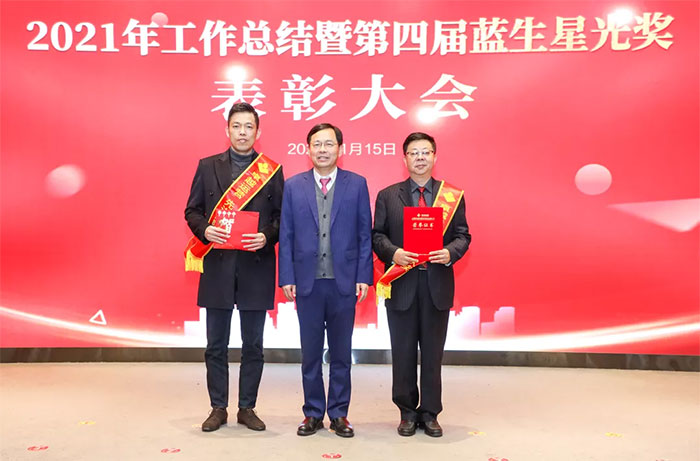 公司书记陈树林宣读《关于表彰2021年度“蓝生星光奖”获奖者的通报》,表彰张宇峰等11名同志“经营管理之星”、黄树其等7名同志“学科贡献之星”、沈原等11名同志“优质服务之星”、樊春霞等5名同志“忠诚敬业之星”和王莹等9名同志“青年希望之星”。