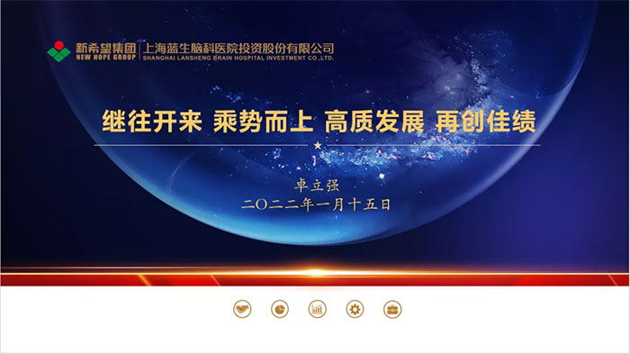 公司副总裁兼同济大学附属天佑医院院长蔡剑飞、公司副总裁兼上海蓝十字脑科医院院长项耀钧、上海蓝生万众医院院长韩建新、上海蓝生宏德医院院长周宏宇、慈溪蓝十字脑科医院院长杭鹤云就2021年工作完成情况、成绩亮点、检讨反省和2022年计划安排作汇报。