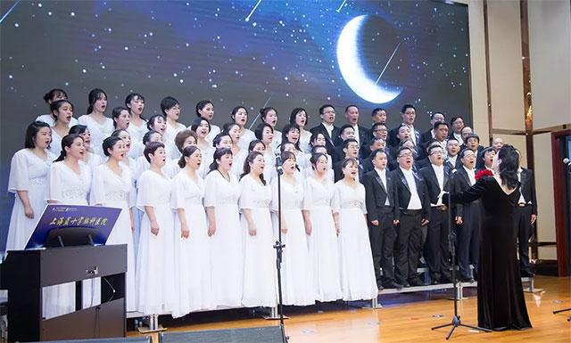 震撼全场刚刚成立才2个月不久的“蓝色梦幻合唱团”以《半个月亮爬上来》及《我的中国心》为晚会献上了2首歌曲。