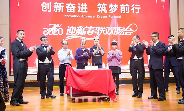 晚会开始前,院长项耀钧、公司董事长卓立强等领导上台致新年贺词,向在场人员致以新春的问候和诚挚的祝福。