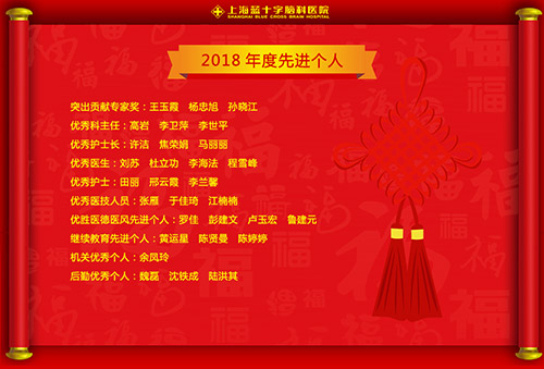 同时,医院举行了“第一届上海蓝十字脑科医院荣誉奖”表彰及授奖仪式。获得表彰的有:精诚奖8位、赤诚奖19位、忠诚奖31位。