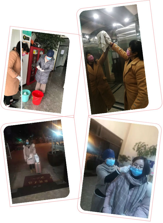 王淑娟心直口快,做事认真,在大年三十为除夕夜值守的医护人员派发盒饭发到手发麻,这几天为员工宿舍的卫生防疫工作操劳着。她负责371张床位的员工宿舍,就一个保洁阿姨与她一起工作,从早晨一直忙到下午,为每一处触手可及的地方保洁消毒。