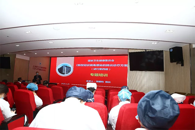 下午,在10楼会议室,项耀钧院长主讲了《新型冠状病毒感染的肺炎诊疗方案(试行第四版)》专题培训。在沪的各科室医护人员等参加了培训。