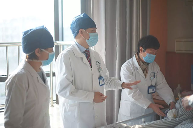 上午,神经外科6B病区潘仁龙主任严谨而细致地查房、看望住院病人。