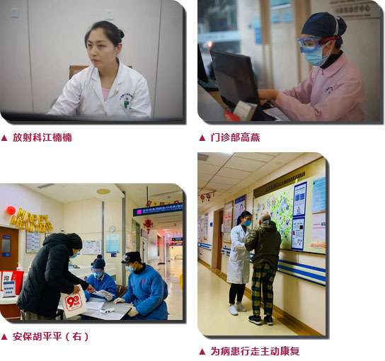 在这里,还有一大批任劳任怨的医护人员,比如,放射科江楠楠,刚生孩子休了产假2个月就来上班,春节期间没有休息过一天;还有门诊部高燕,这些天来一直在第一线,有几天还顶上急诊防疫第一道防线上;还有23岁保安胡平平,连续36小时在一线恪尽职守......