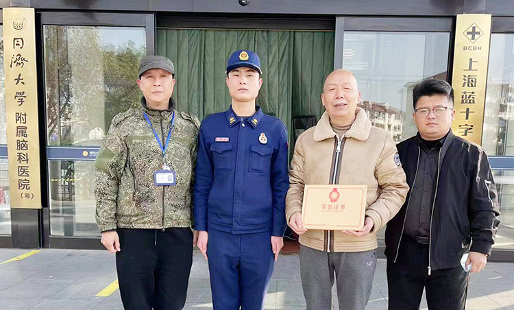 1月18日上午,受闵行区消防救援支队领导周健和七宝救援站潘曙鸿站长委托,七宝救援站片区负责人在百忙中来到医院,将荣誉证书郑重交到总务科陈正松科长的手中。