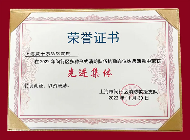 近日,上海蓝十字脑科医院在2022年闵行区多种形式消防队伍执勤岗位练兵活动中荣获先进集体称号,标志着我院消防安全工作不断做深做实,为营造安全有序的就医环境夯实了基础。