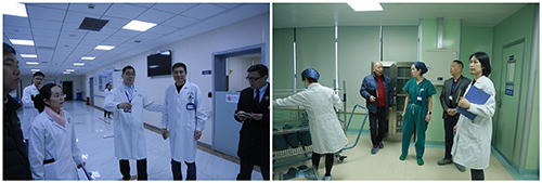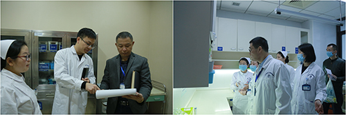 ▲潘耀良副院长带领各科室负责人对医院大楼各楼层进行安全大检查
