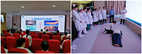 ▲医务科特邀麻醉科樊虎副主任进行了心肺复苏紧急抢救护相关培训及演练