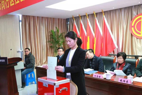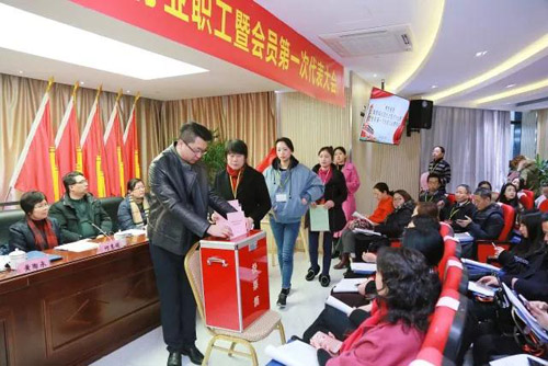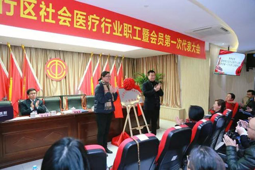 本次大会以会员代表大会、职工代表大会,两会合一的形式召开。会上以举手表决的形式通过了行业工会章程。大会选举产生第一届行业工会委员会。来自虹桥医院的杨素琴当选主席,上海蓝十字脑科医院副院长童永祥当选为副主席。市医务工会副主席何园和区卫计委党委书记黄陶承为行业工会成立揭牌。