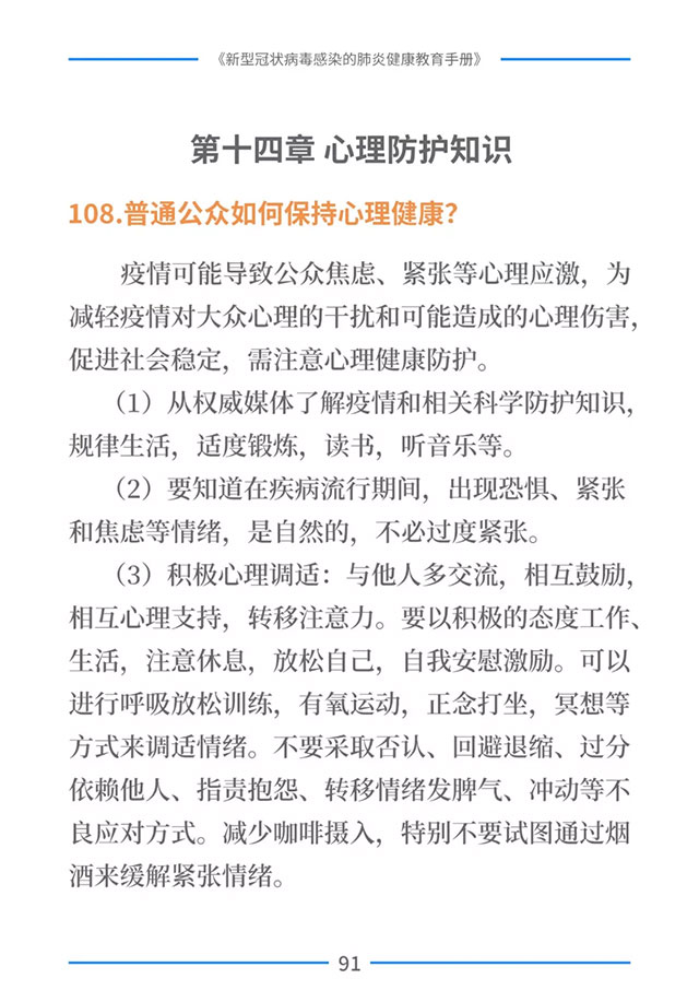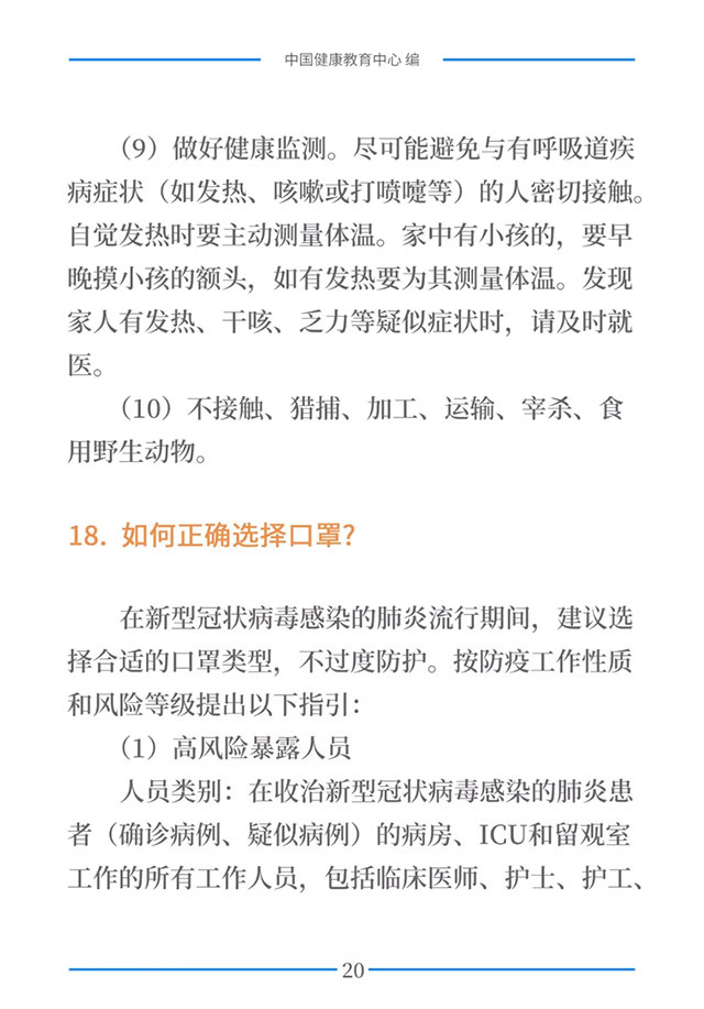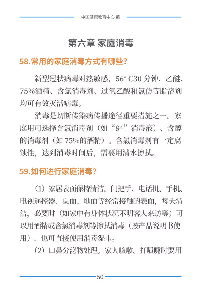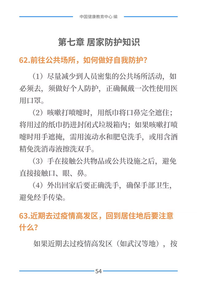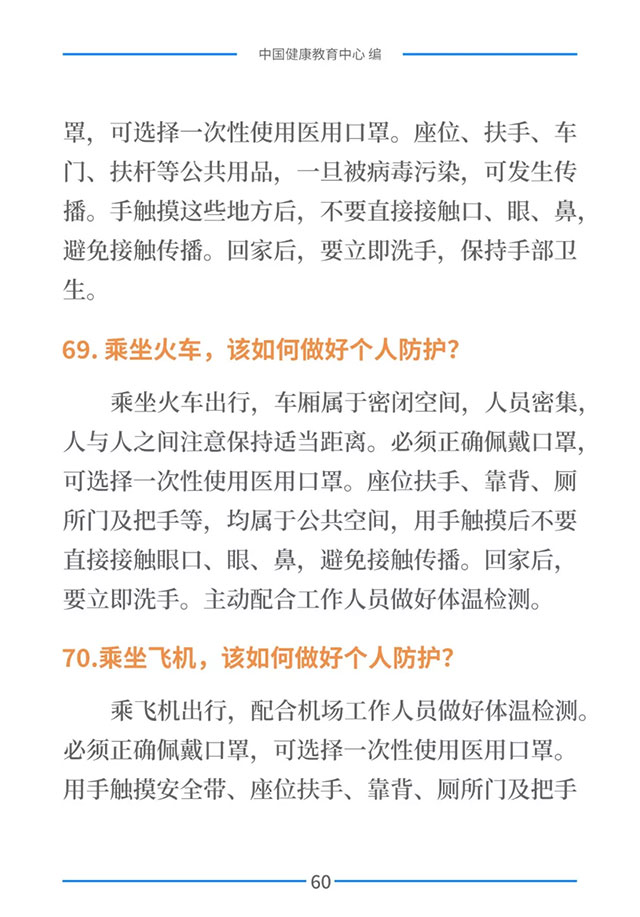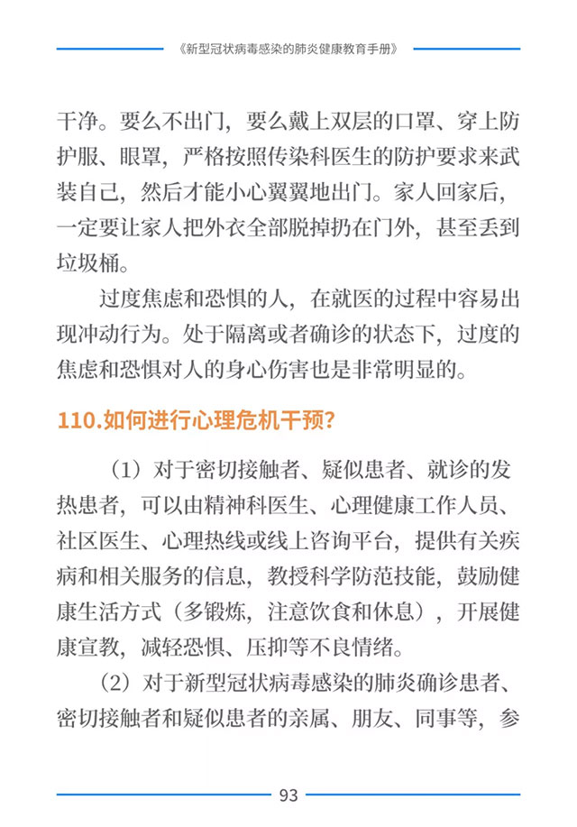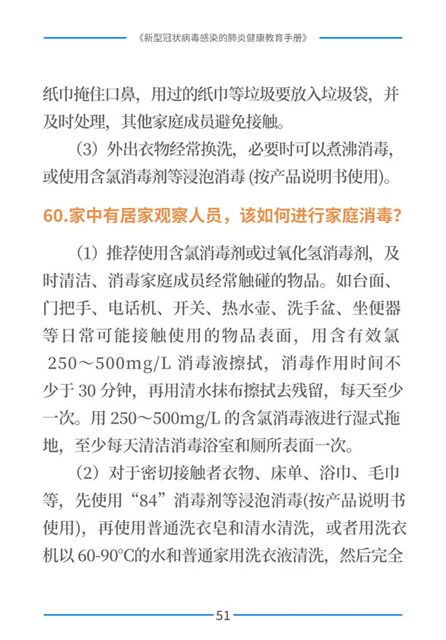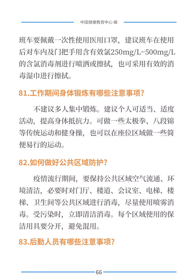 该手册共分为十五章,涉及相关知识、个人防护、重点人群防护、居家防护和消毒、出行防护、重点场所防护、就医防护、心理防护及健康生活方式等方面的114个问题,供广大公众和各级专业机构参考使用。