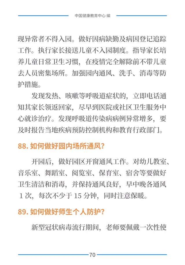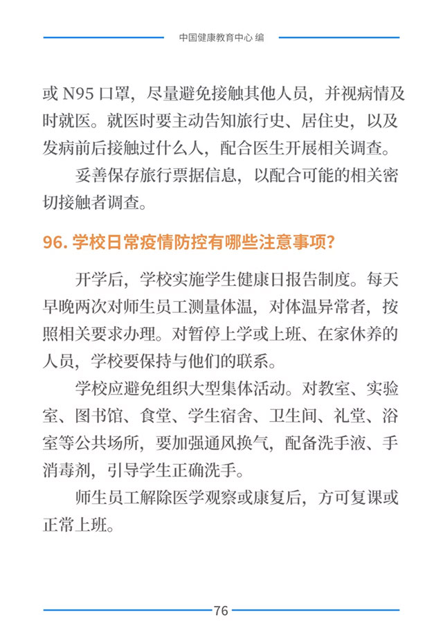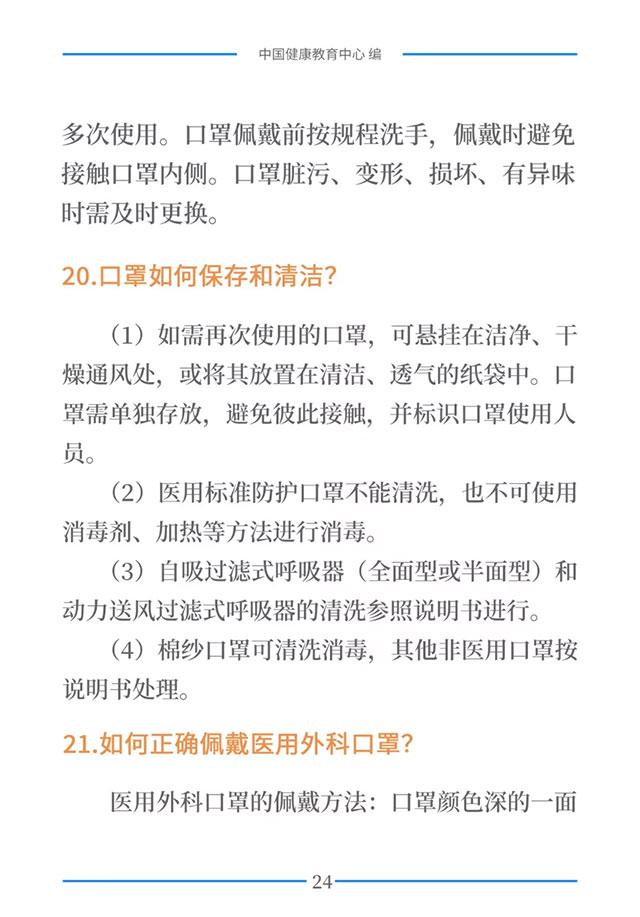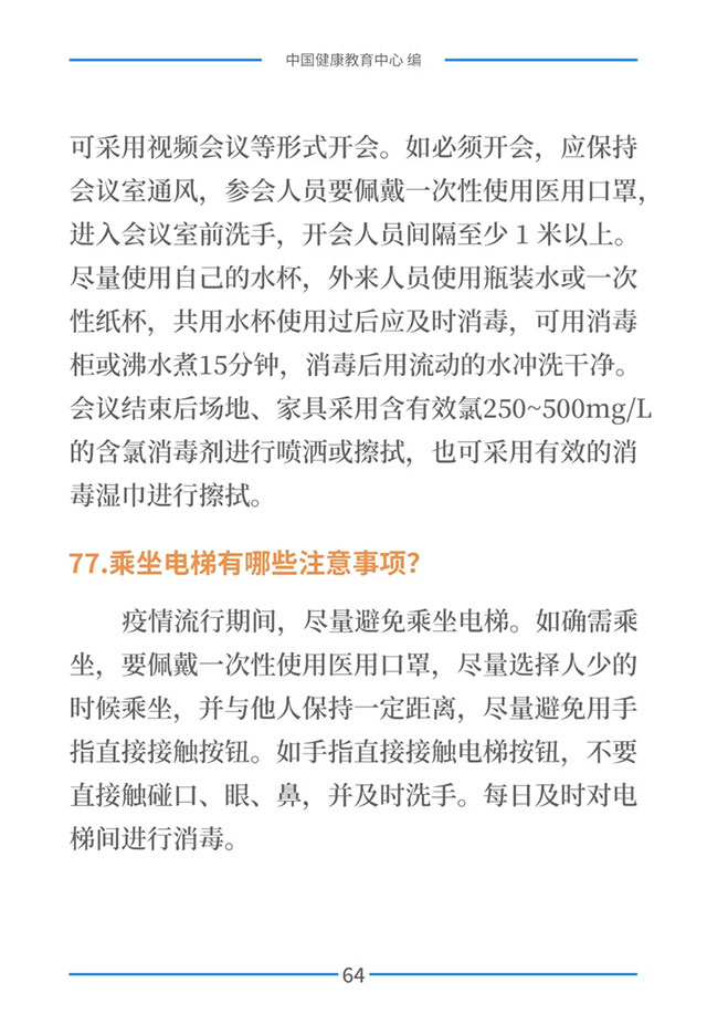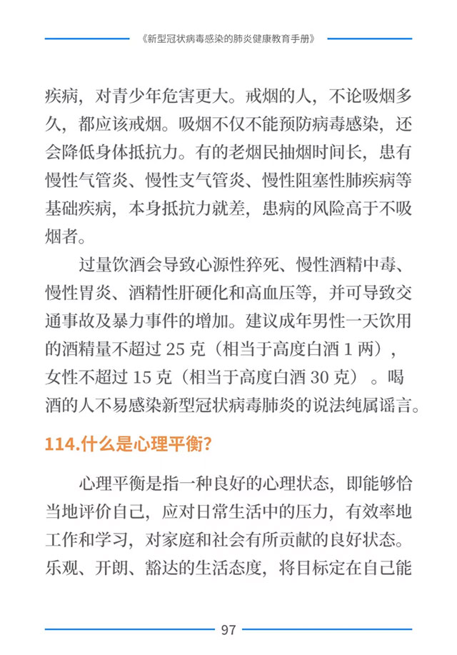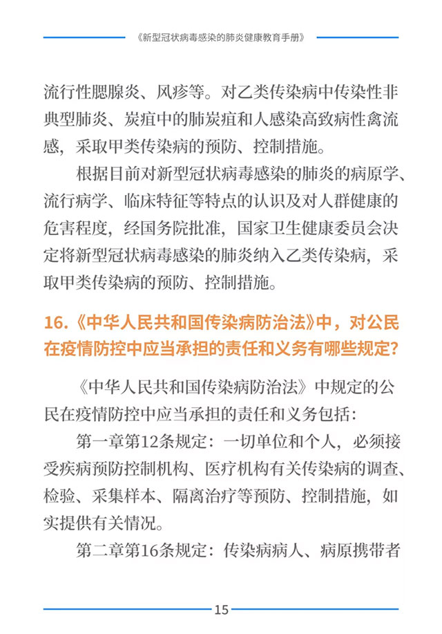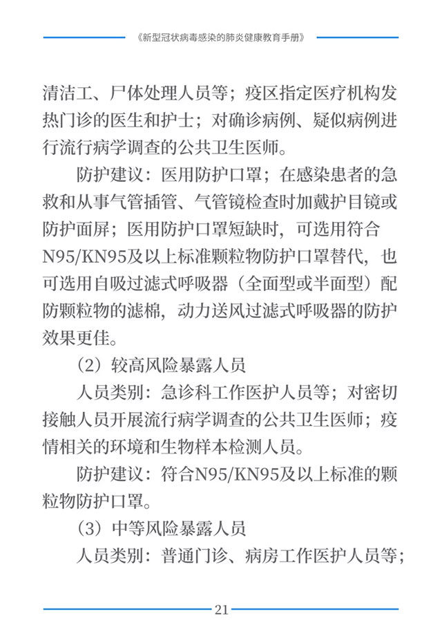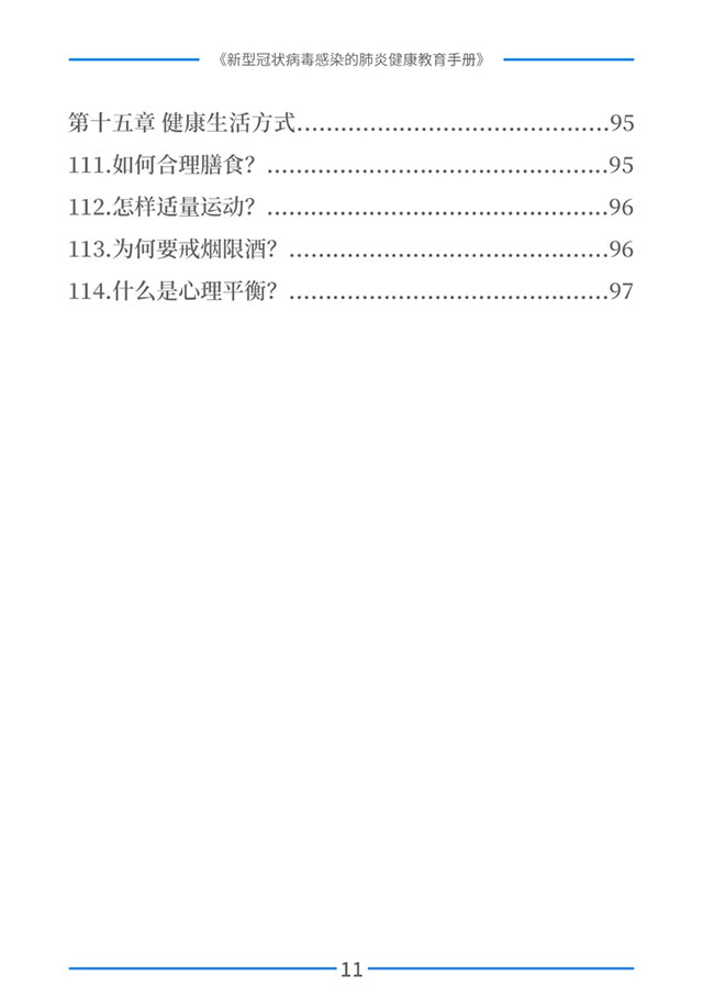 该手册共分为十五章,涉及相关知识、个人防护、重点人群防护、居家防护和消毒、出行防护、重点场所防护、就医防护、心理防护及健康生活方式等方面的114个问题,供广大公众和各级专业机构参考使用。