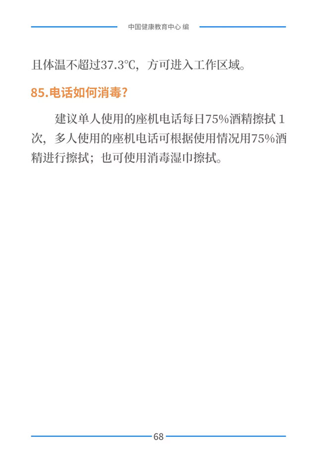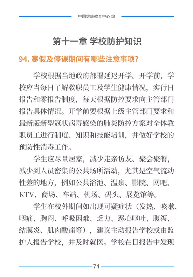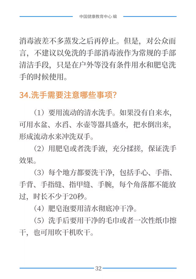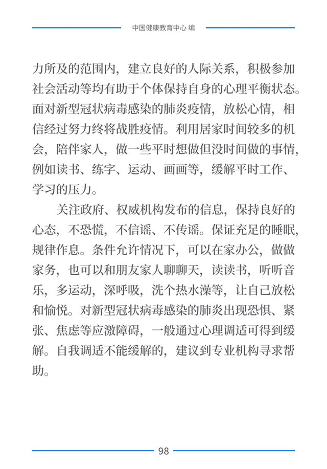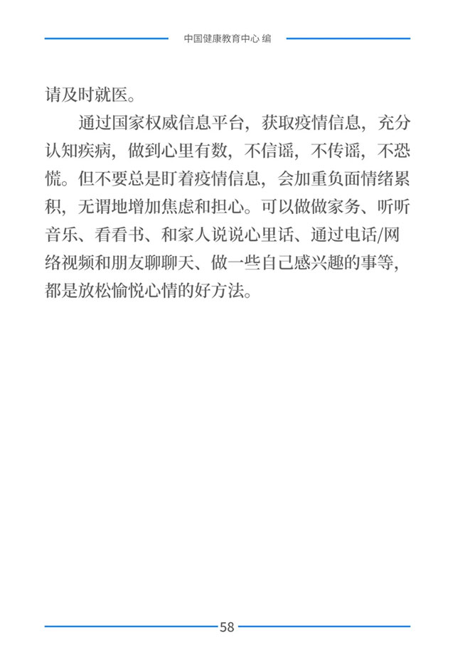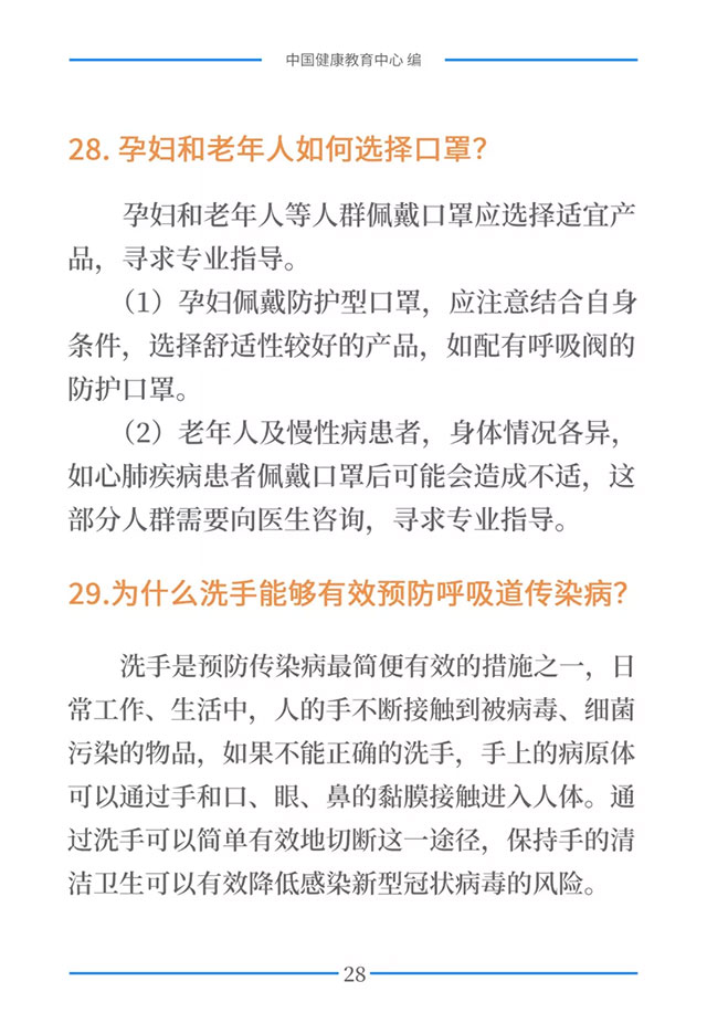 普及防控知识,提高公众防控意识和能力,是打赢新型冠状病毒感染的肺炎疫情阻击战的重要保障之一。为进一步加强疫情防控健康教育,在国家卫生健康委宣传司的指导下,中国健康教育中心组织专家对疫情防控相关政策、信息和知识进行梳理,形成了《新型冠状病毒感染的肺炎健康教育手册》。