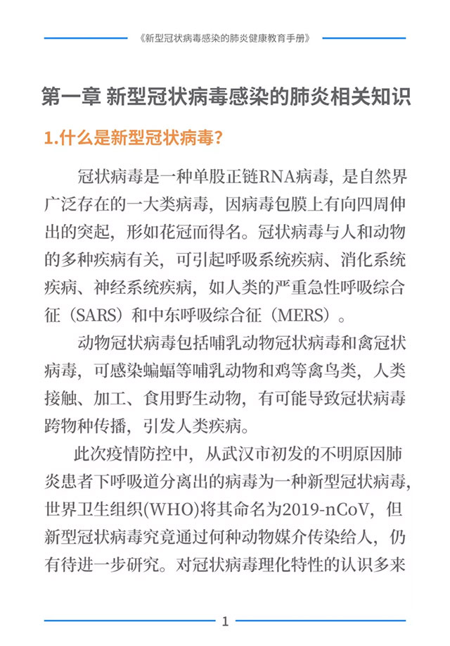 以下即为《新型冠状病毒感染的肺炎健康教育手册》全书内容↓↓↓