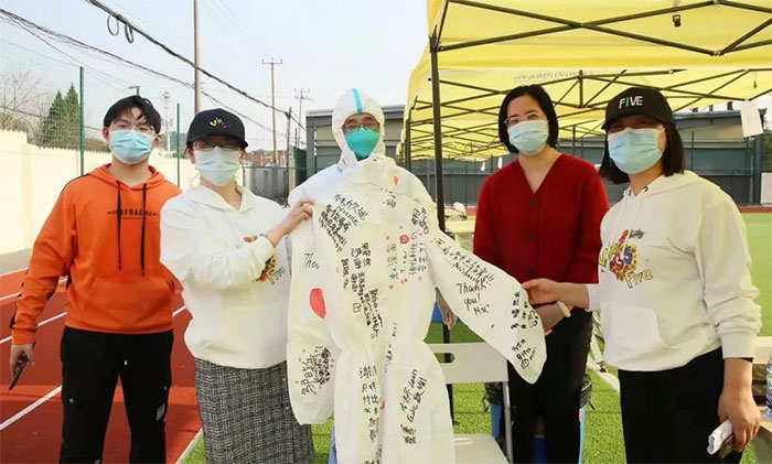 无论疫情的哪个阶段,蓝十字人都“疫”无反顾、挺膺担当,全力以赴担负起医者应该尽的责任和使命。蓝十字人不仅获得了政府的认可,还赢得了群众的好评。“谢谢工作人员,你们辛苦了”的纸杯花、“最美逆行者”简笔画、满是鼓劲与祝福的大白服和联名感谢信等,每一份“特别”的礼物,都是蓝十字人“爱”的见证。