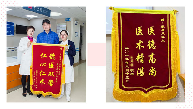 ▲ 视病人如亲人的殷昌凤医生收到的锦旗(部分)